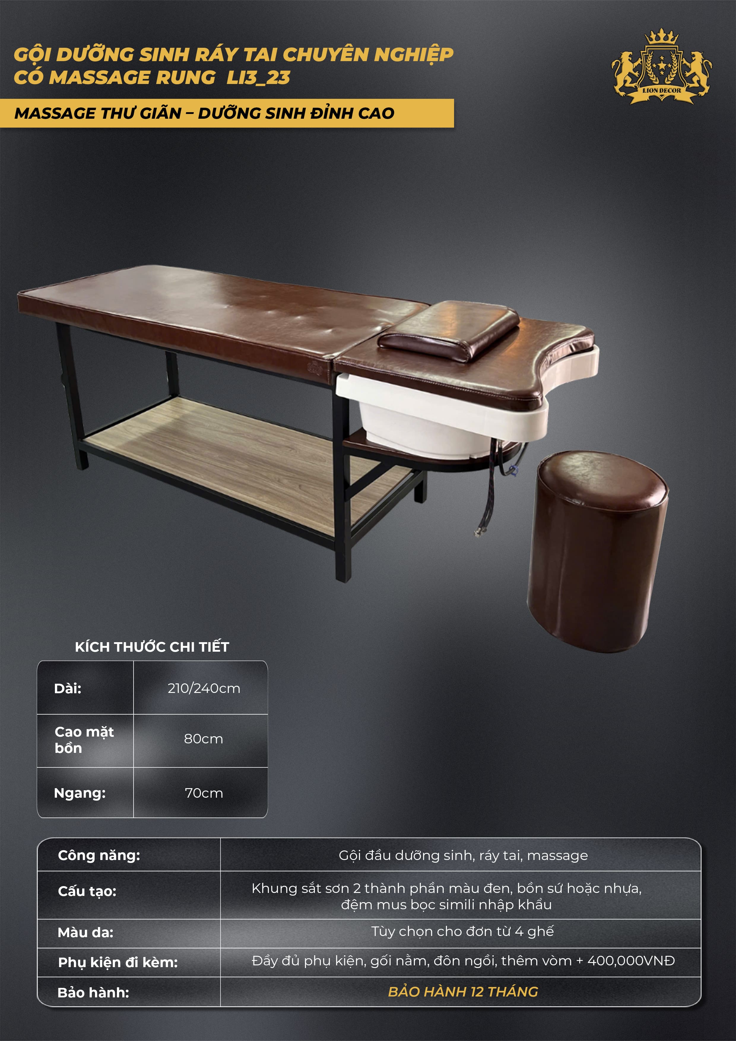 Gội Dưỡng Sinh Ráy Tai Chuyên Nghiệp LI3_23 – Giải pháp tối ưu cho spa muốn nâng tầm dịch vụ với trải nghiệm dưỡng sinh và massage hiện đại.