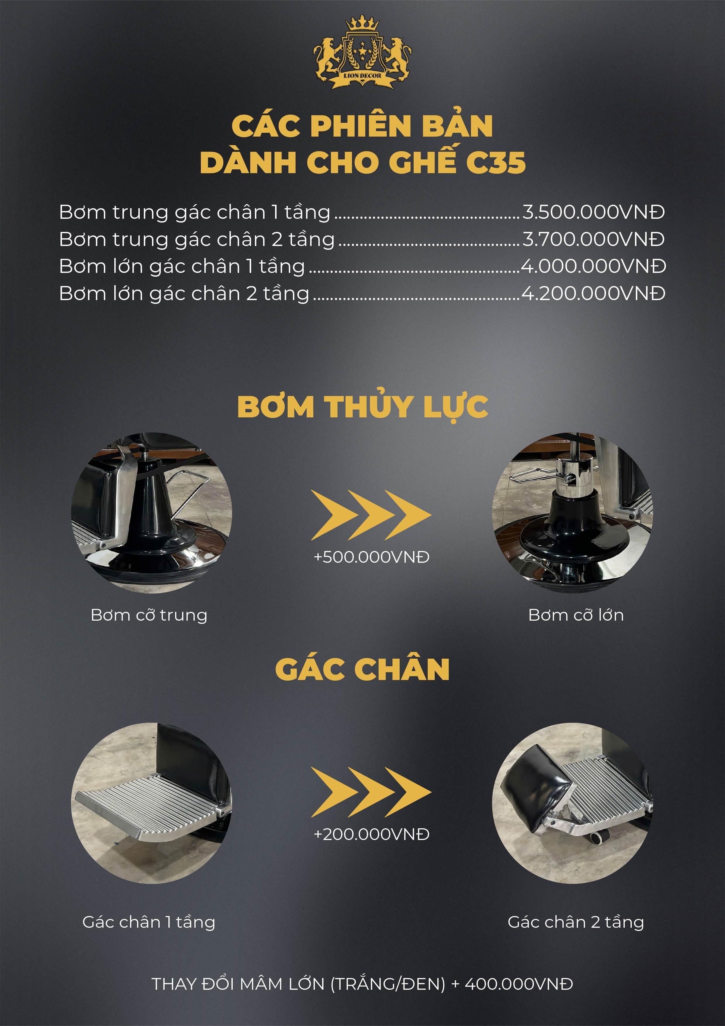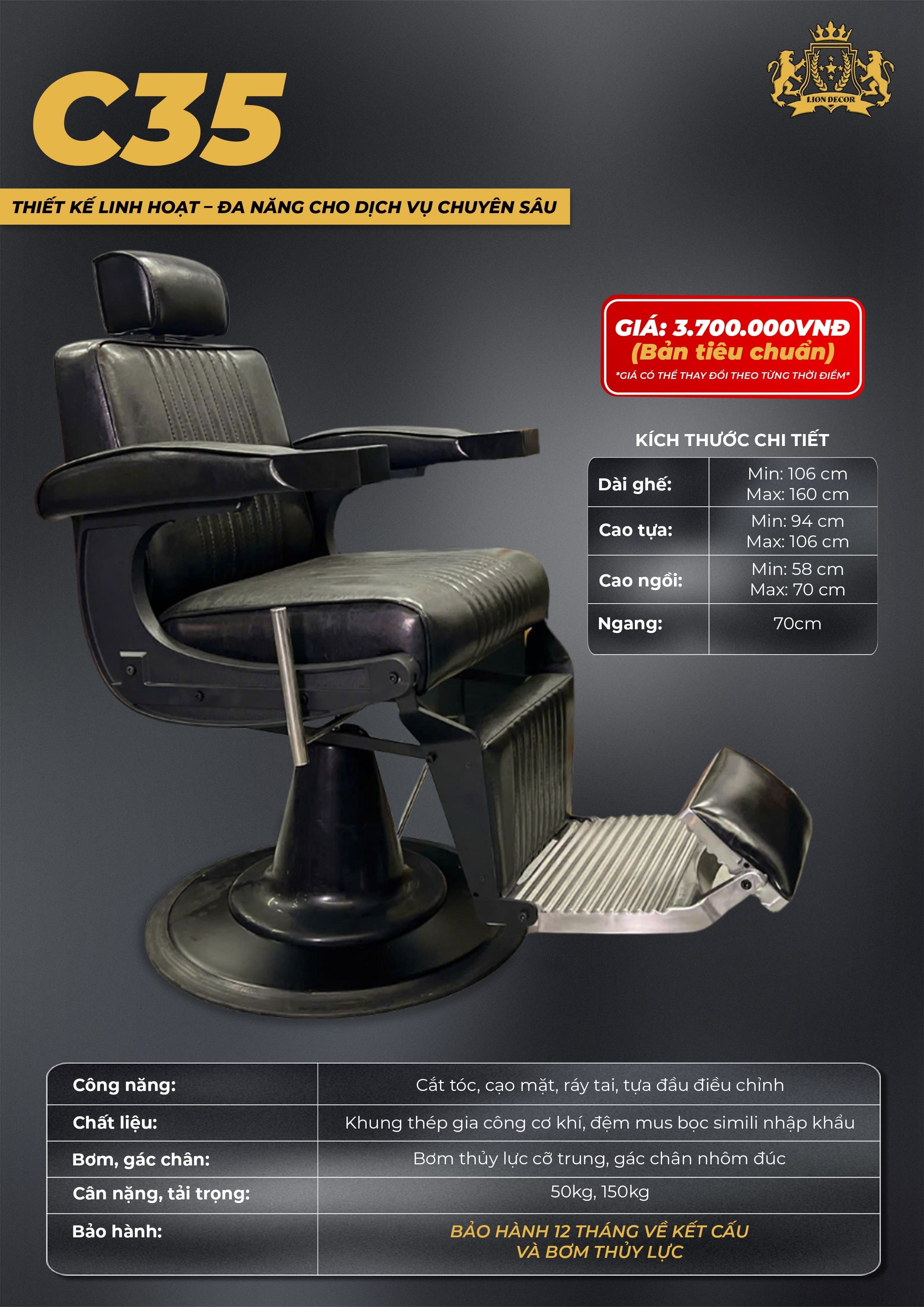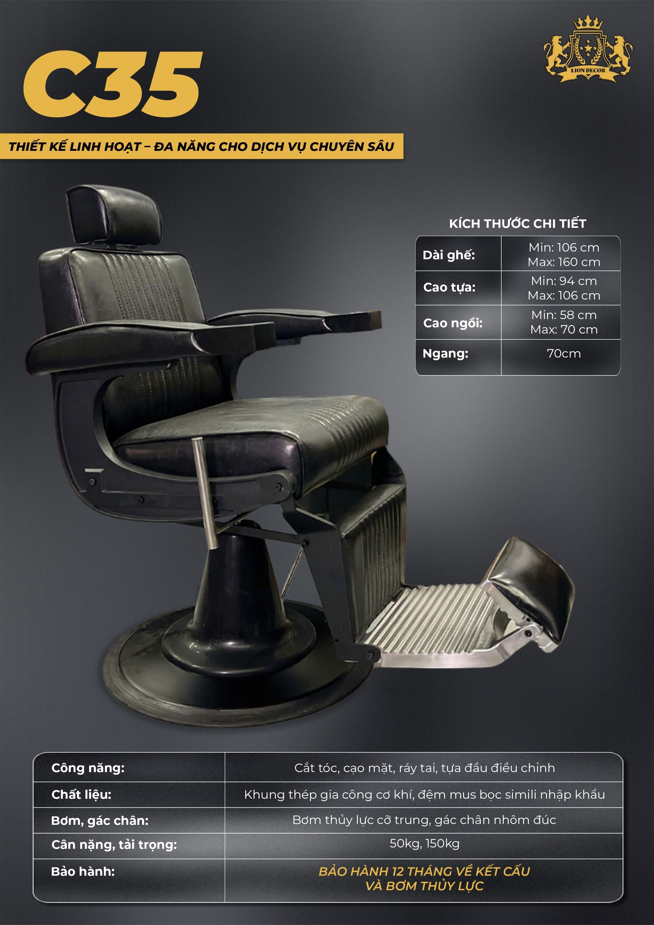 Với những ưu điểm vượt trội về thiết kế, chất liệu và tính năng, C35 xứng đáng trở thành một trong những mẫu ghế barber đáng đầu tư cho tiệm tóc của bạn.