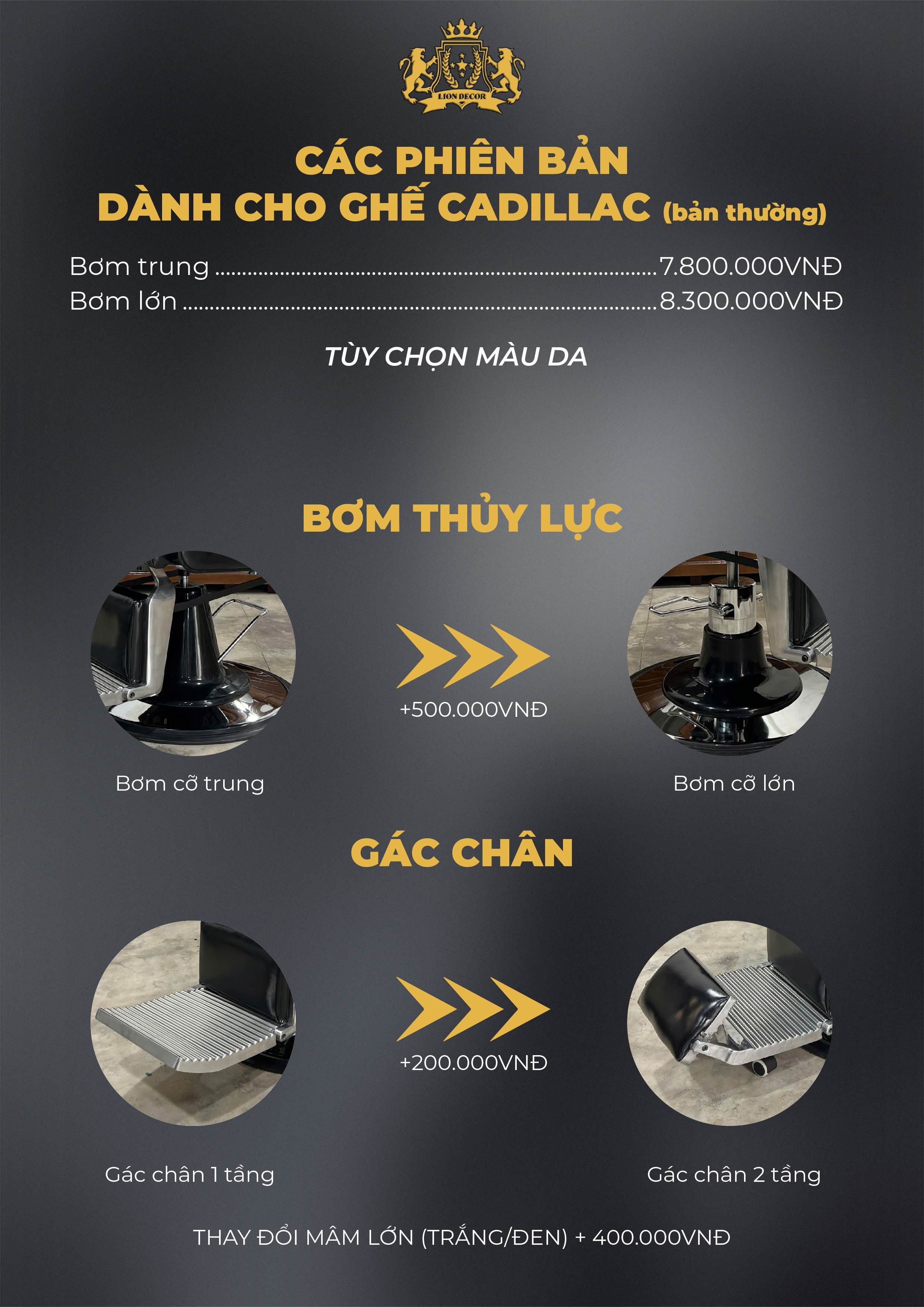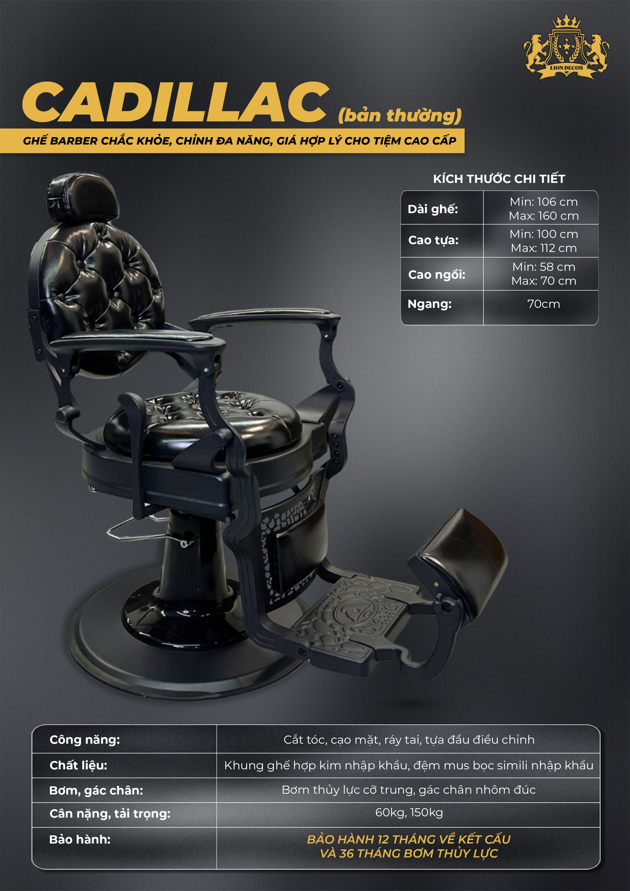 👉 Cadillac bản thường thích hợp cho những tiệm tóc có nhu cầu cơ bản, mong muốn một mức giá tiết kiệm, nhưng vẫn giữ được trải nghiệm êm ái và tính thẩm mỹ.