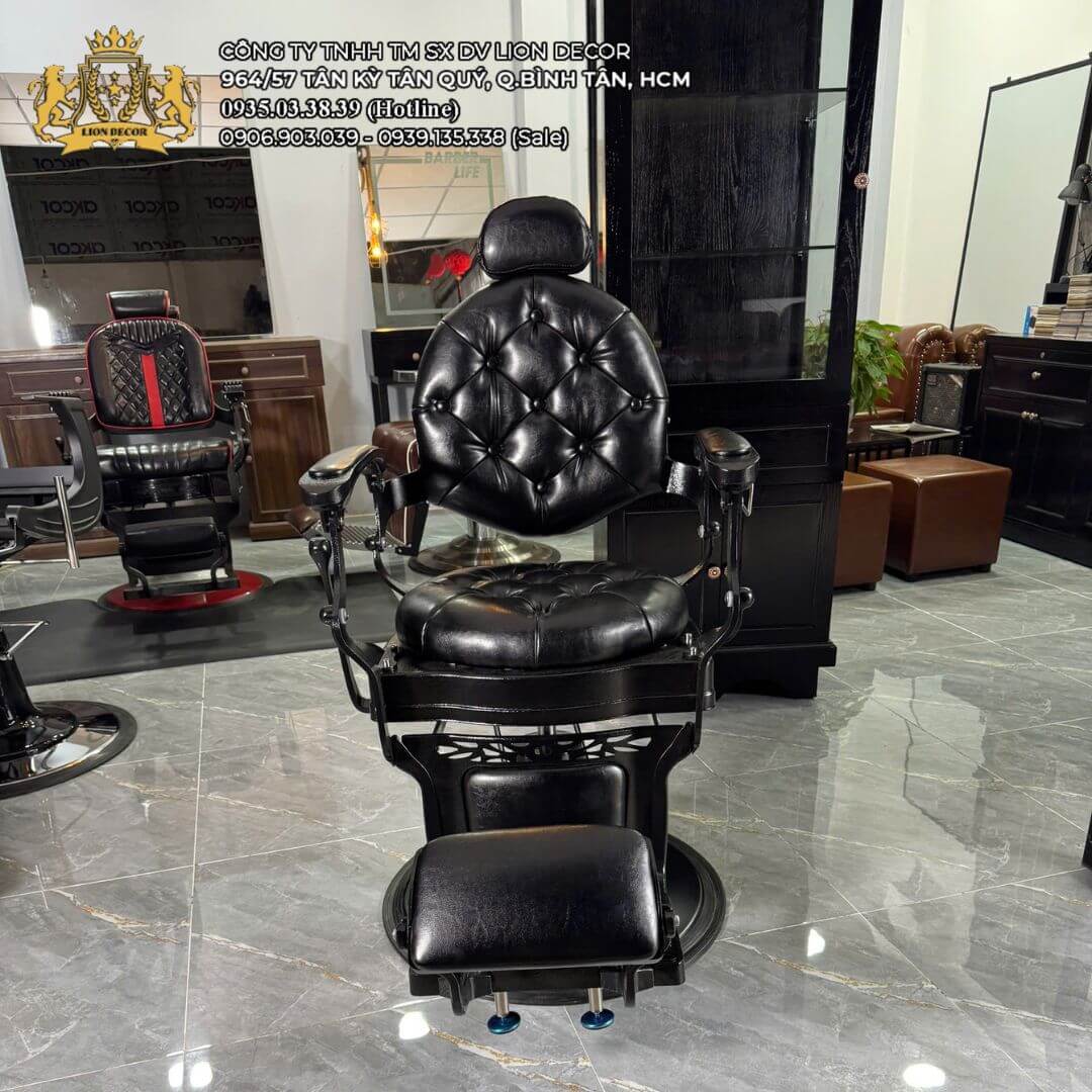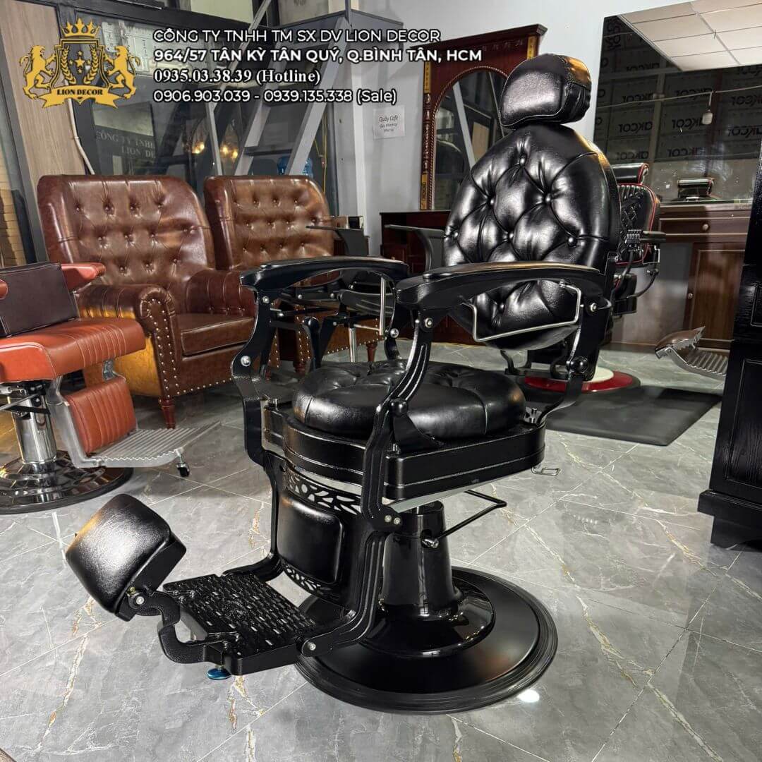 Khách hàng có thể lựa chọn màu da bọc ghế theo nhu cầu, mang lại sự linh hoạt trong thiết kế và phù hợp với phong cách barber shop. Tuy nhiên, do yếu tố khung ghế khó kiểm soát nguồn gốc và chất lượng, sản phẩm này không nằm trong nhóm ưu tiên bán của Lion Decor.