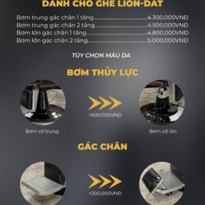 Về chính sách bảo hành, LION-DAT mang lại sự an tâm tối đa cho chủ tiệm: 12 tháng cho kết cấu và lên tới 36 tháng cho hệ thống thủy lực – một cam kết chất lượng vượt trội so với nhiều dòng ghế phổ thông khác trên thị trường.