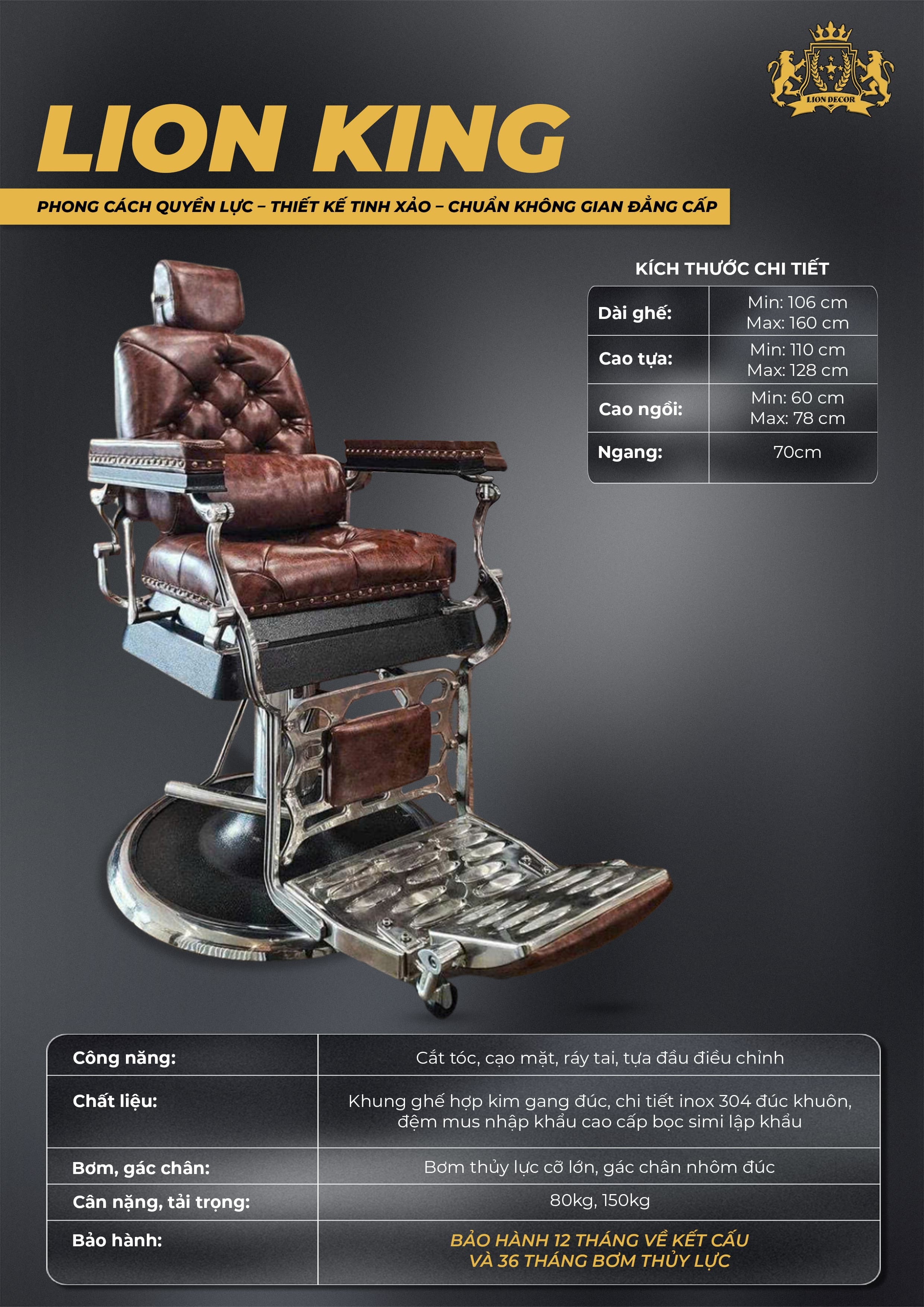 Ghế barber LIONKING – Biểu tượng quyền lực và đẳng cấp
