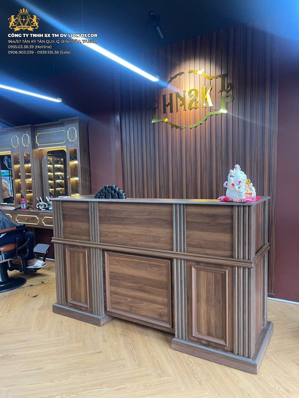 Mẫu quầy thu ngân phong cách cổ điển mang đến vẻ sang trọng và đẳng cấp cho khu vực lễ tân. Với thiết kế phào chỉ nổi, tỉ lệ cân đối và màu gỗ nâu trầm đẹp mắt, sản phẩm phù hợp với các barber shop, showroom thời trang, studio hoặc không gian mang xu hướng luxury – classic.