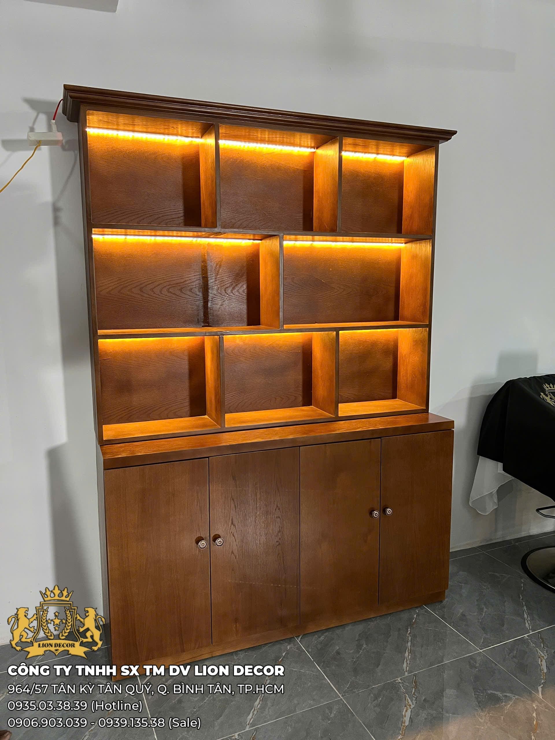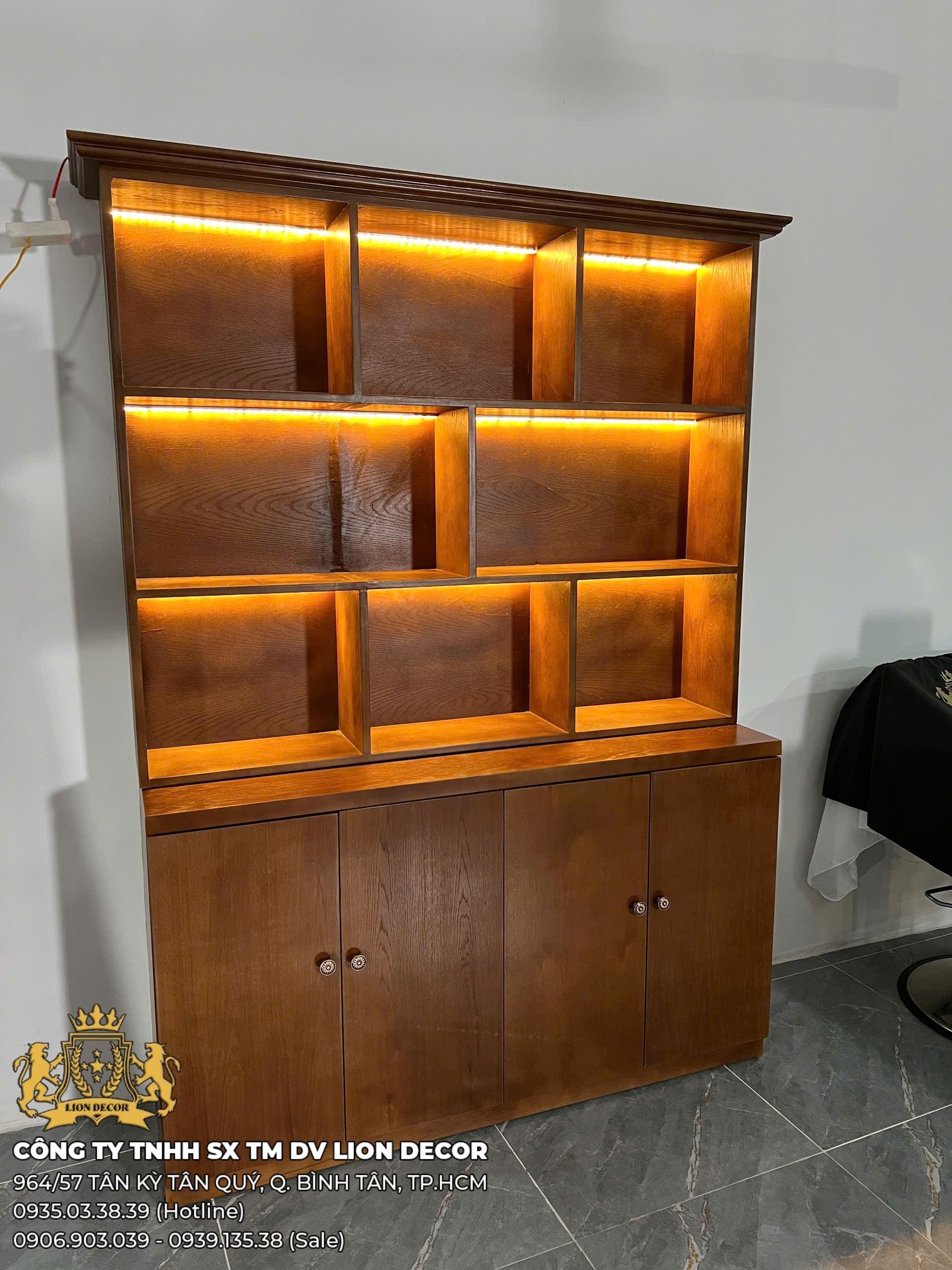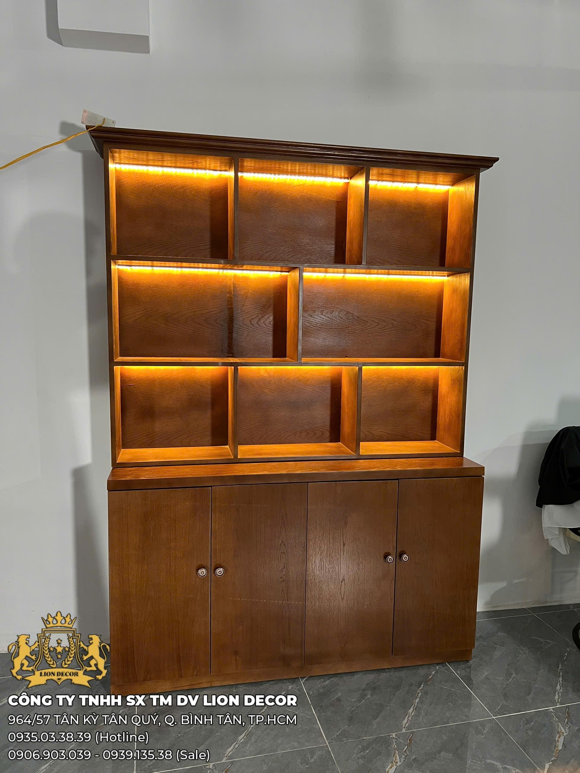 Có thể thay đổi số lượng ô kệ, kiểu tay nắm, màu LED,…